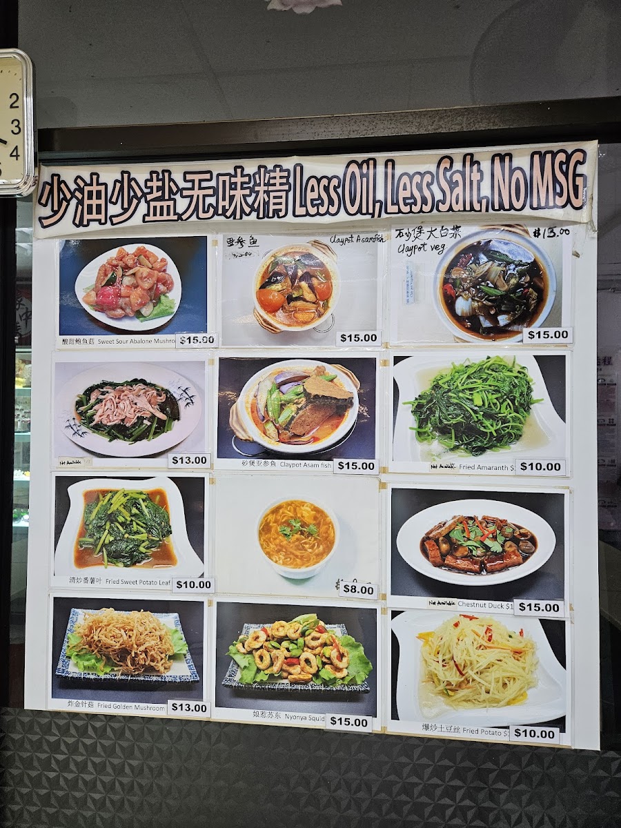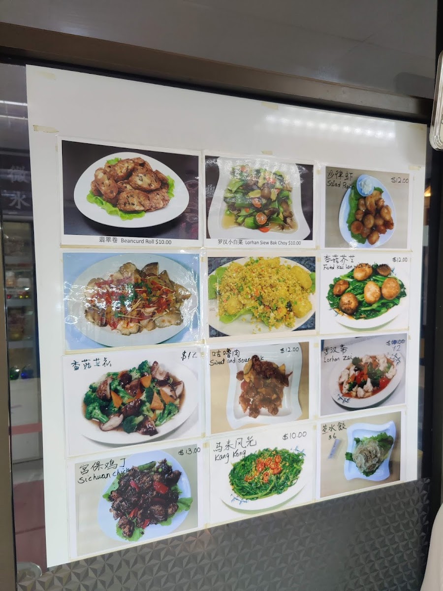 Claypot dishes such as 砂煲豆腐 Claypot Tofu, 砂煲豆包 Claypot Beancurd, 砂煲焖苦瓜 Claypot Bitter Gourd, 砂煲鱼香茄子 Claypot Salty, and 砂煲罗汉斋 Claypot Lorhan Zhai, alongside vegetarian meats like 咕噜肉 Sweet And Sour Pork, 黑椒排骨 Black Pepper Pork Rib, 栗子鸭 Chestnut Duck, and 宫保鸡丁 Sichuan Chicken, round out the experience. Finally, lighter stir-fried vegetables and soothing soups-from 清蒸鲍鱼菇 Steamed Abalone Mushroom to 苦瓜豆腐汤 Bittergourd Soup-tie the menu together. Overall, this menu feels like a confident, satisfying summary of what vegetarian comfort food can be when tradition and creativity meet.